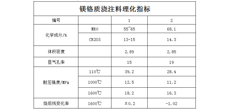 镁铬质浇注料应用: