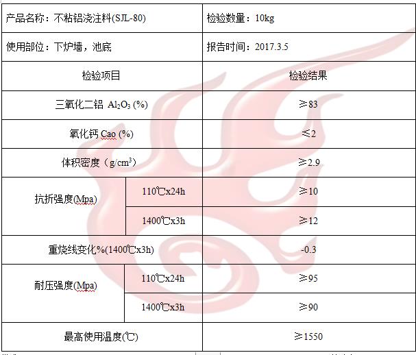 具有整体性强、高强度、耐腐蚀、抗剥落、抗渗透、热稳定性好、不粘铝、不粘渣等特性。